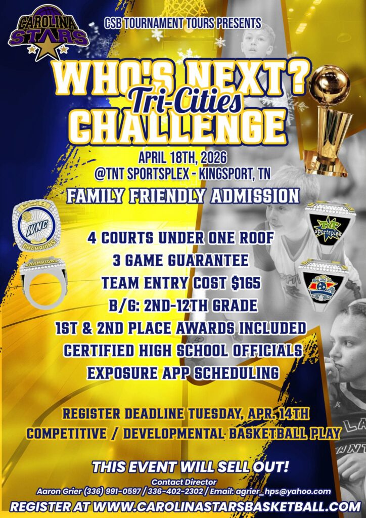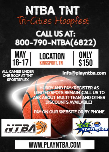 Get ready for the NTBA TNT Tri-Cities Hoopfest, coming to Kingsport, TN on May 16–17! This exciting basketball tournament brings teams together for a full weekend of competitive play—all under one roof at TNT Sportsplex.