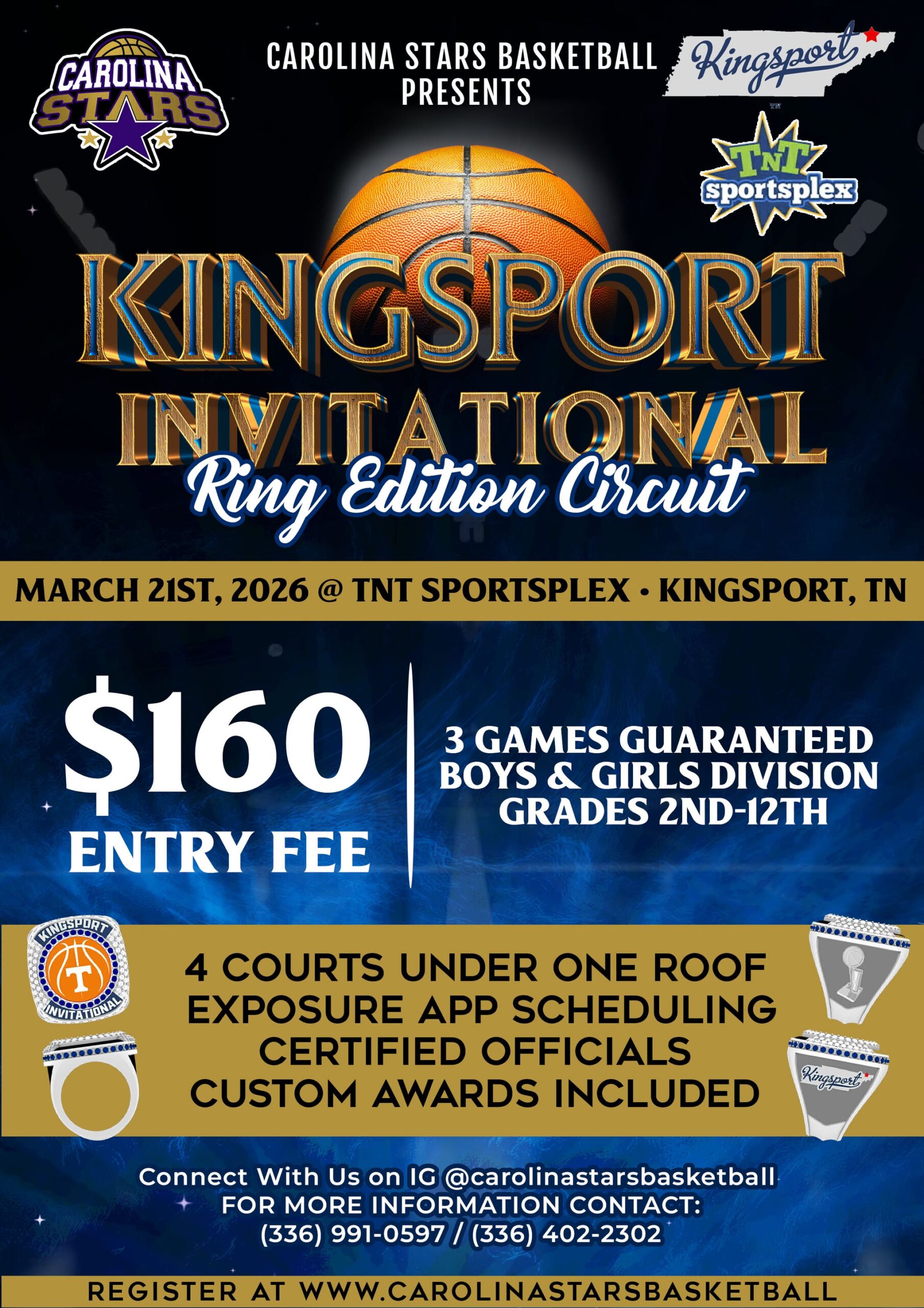 Welcome to the 2026 TNT Sportsplex Edition Circuit—a full lineup of competitive, one-day basketball tournaments hosted in Kingsport, Tennessee. Powered by CSB Tournament Tours, each event delivers high-energy matchups, multi-court action, and custom awards for 1st and 2nd place teams. Teams receive a 3-game guarantee, structured brackets, and Exposure App scheduling for smooth event management.