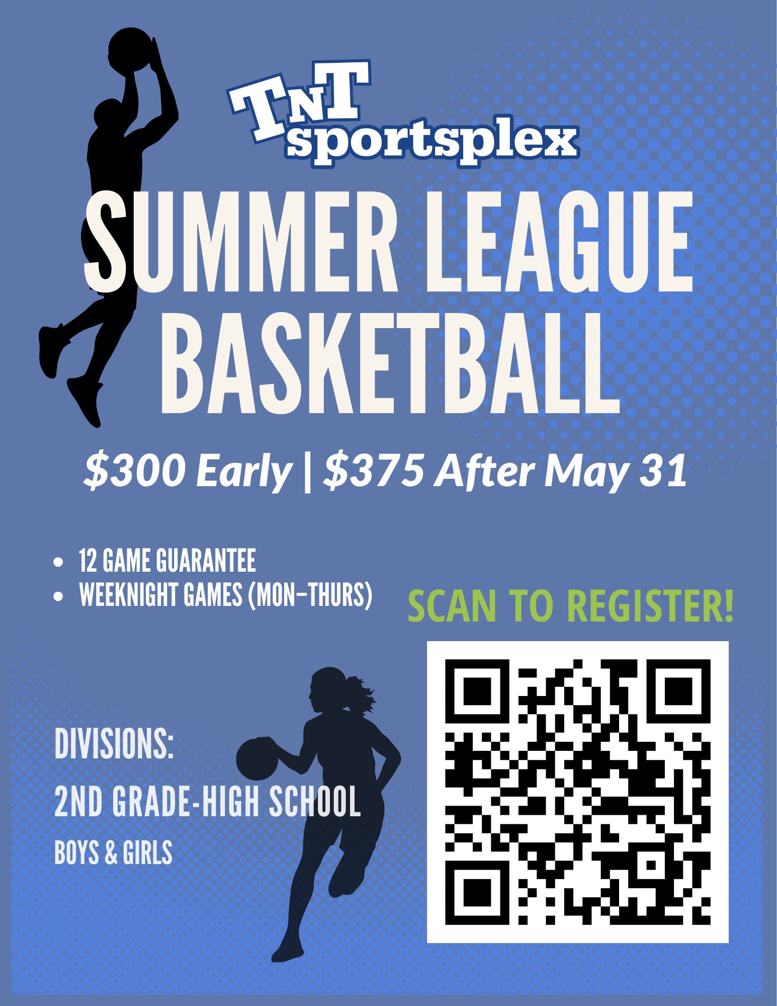 Get in the gym this summer and compete in one of the top youth leagues in the area. The TNT Sportsplex Summer League is built for players who want real game experience, consistent competition, and a structured environment to improve. Teams are guaranteed 12 games played throughout the week, giving athletes plenty of reps, development